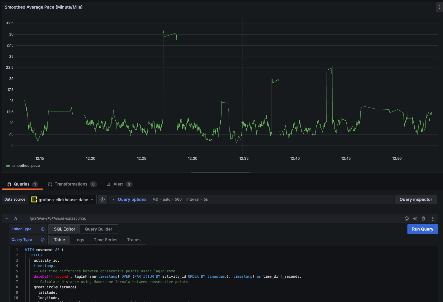 Here is an example graph I made in Grafana for analyzing smoothed pace over time for a run.