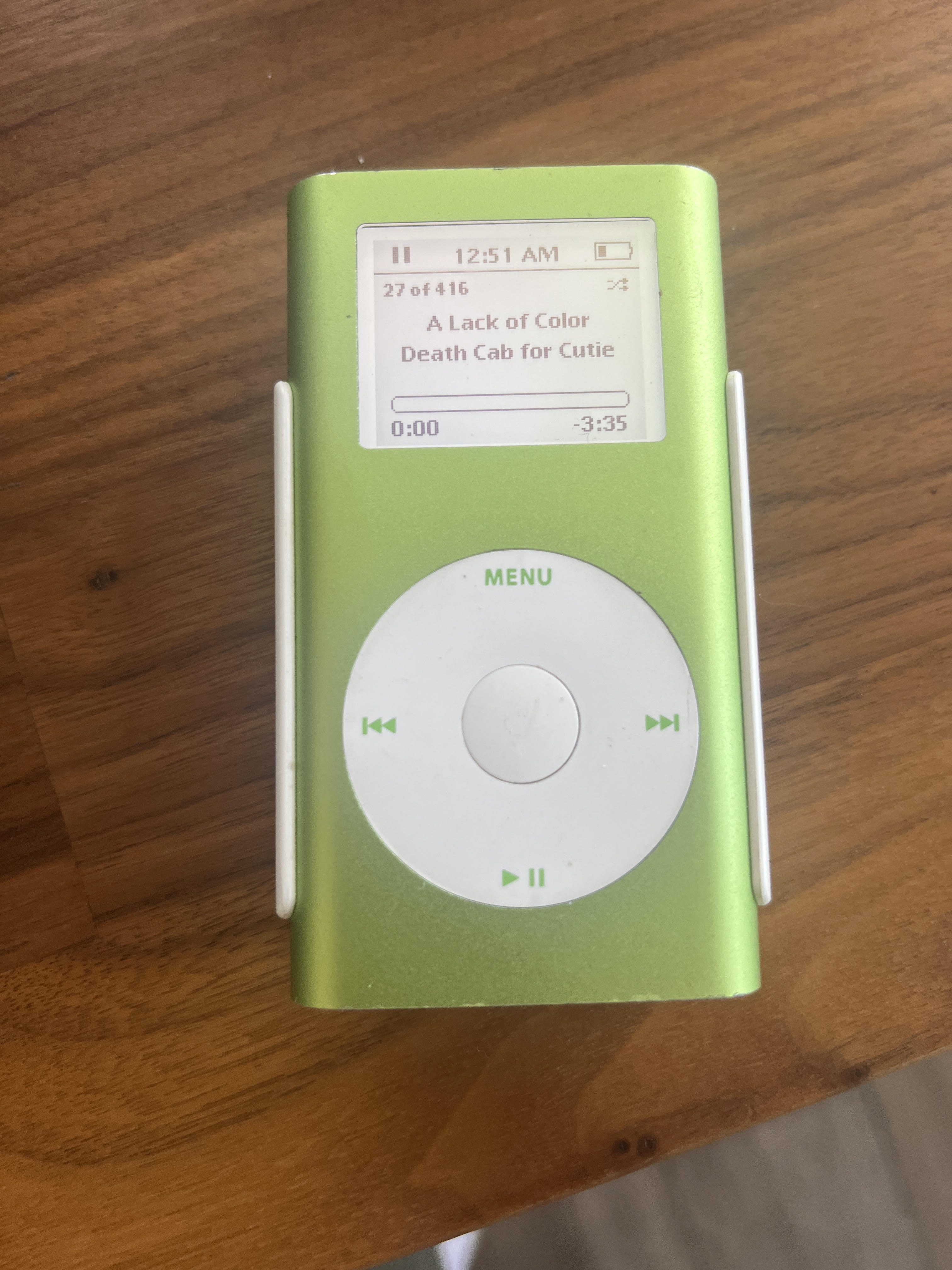 In middle school I had a lime green iPod Nano that was glued to my waist everywhere I went. The experience was fairly pure because I had a pre-existing set of music that I intentionally picked and listened to on the go. This is the music experience I wanted to recreate. During the pandemic I went through a series of old iPods and landed on really enjoying the iPod Classic and iPod Mini, both of which I was able to rebuild off parts from Ebay and the Chinese markets.