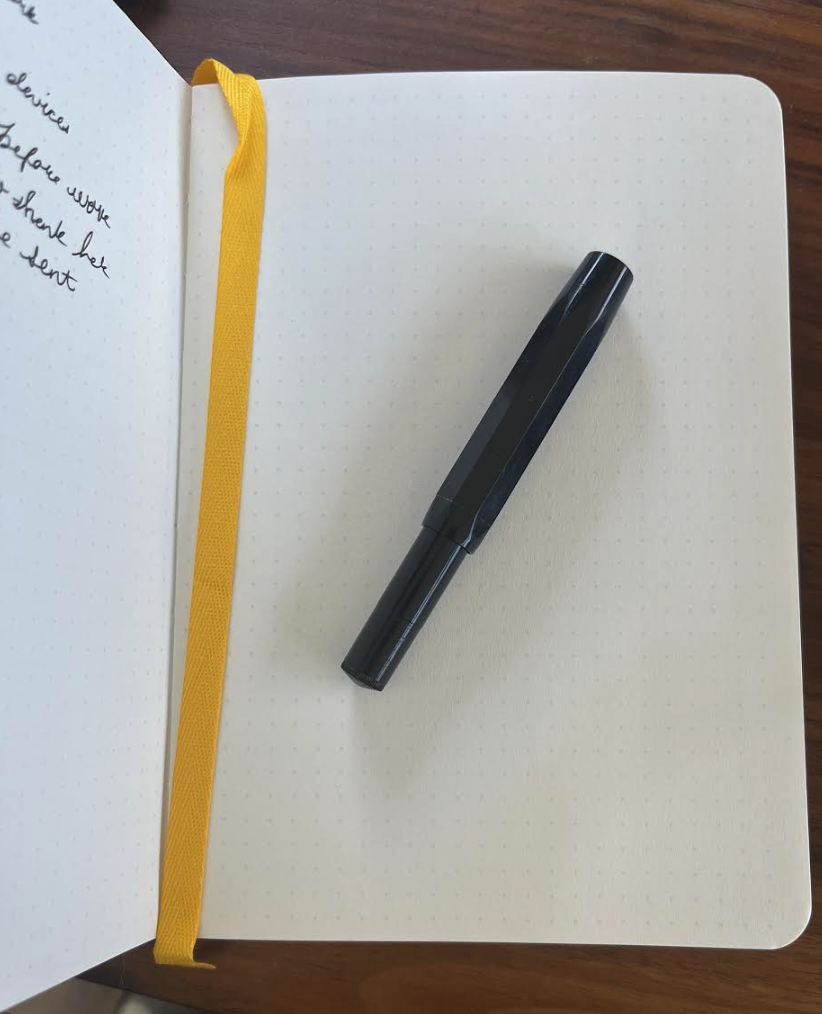 The quality of the notebook is very high, lays flat and has a decent GSM. I’ve become a big fan of fountain pens because I can refill the cartridges for cheap and the quality and feeling of the writing feels amazing.